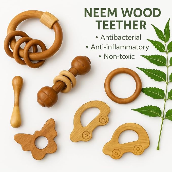 • Handcrafted from organic Neem wood, ensuring a safe and natural teething solution.