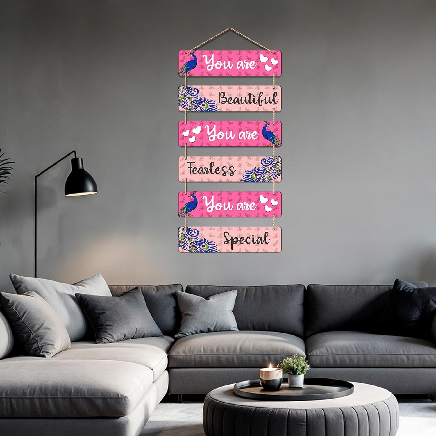 Inspirational Wooden Wall Hanging for Girls | You Are Beautiful Fearless Special Quote Decorative Art | Peacock Theme Wall Decor for Room | Self Love | Gift | Decoration (DWA_3281)
